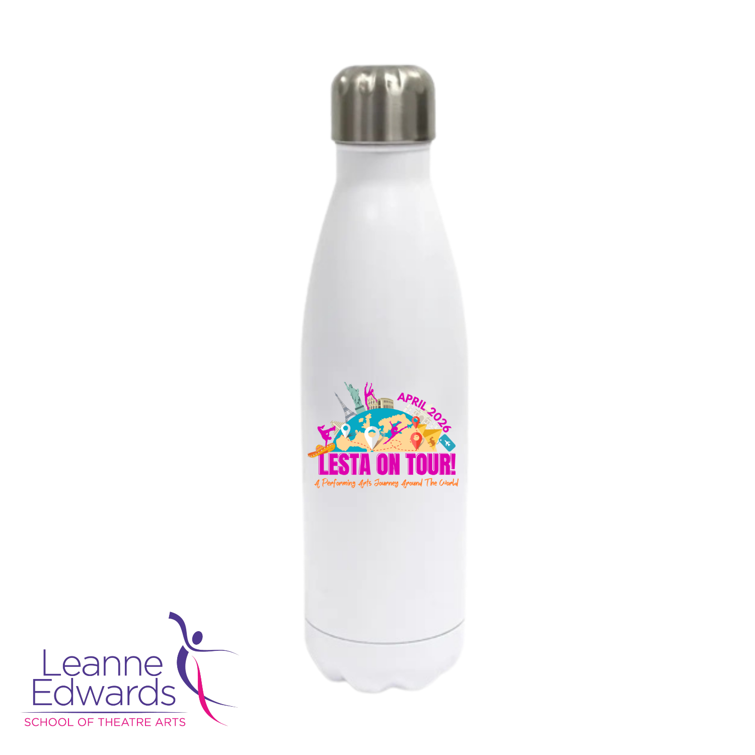 These fabulous water bottles keep drinks hot or cold for hours! But these are even better, serving as a practical and stylish keepsake from the LESTA on Tour show! Use them year-round for dance classes and relive the magic! Made from high quality stainless steel, they hold 500mL and feature the iconic show design.