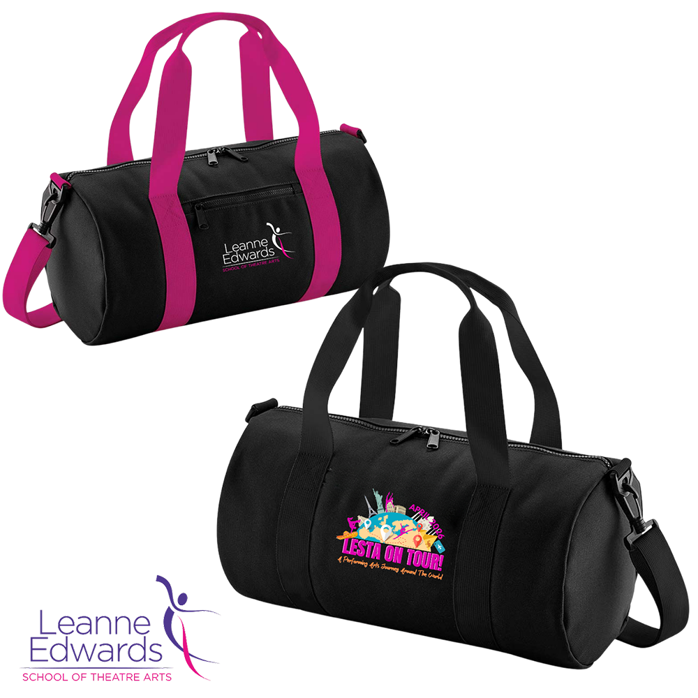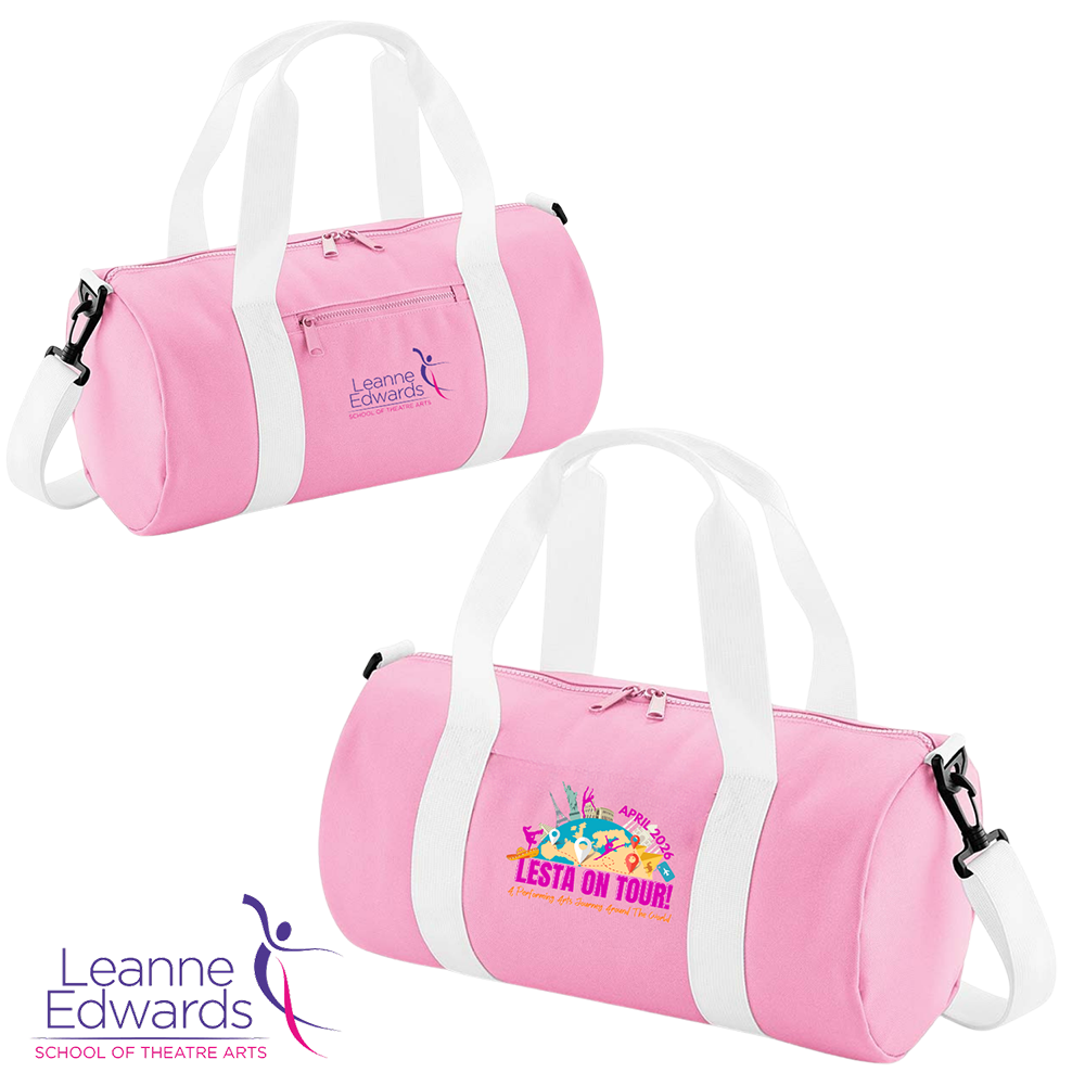 Keep the memories alive throughout the rest of the year with these fabulous and practical barrel dance bags. Made from 600D polyester and boasting a comfortable shoulder strap and front zip pocket, these are the ideal bags to carry your dance essentials to classes at LESTA! They hold a generous 12L of leotards and shoes.